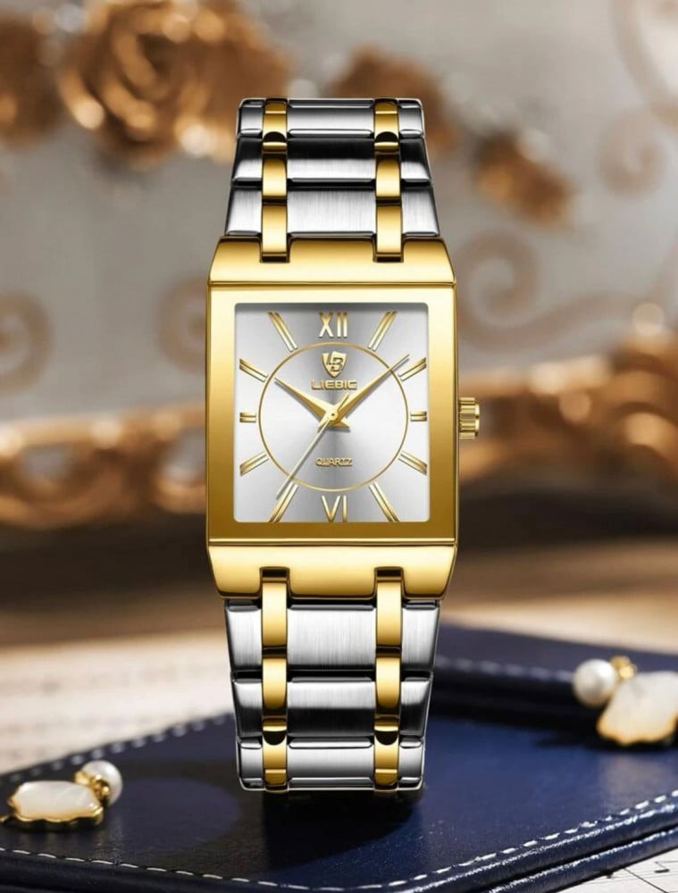 ساعة كوارتز بقرص مؤشر مربع للرجال