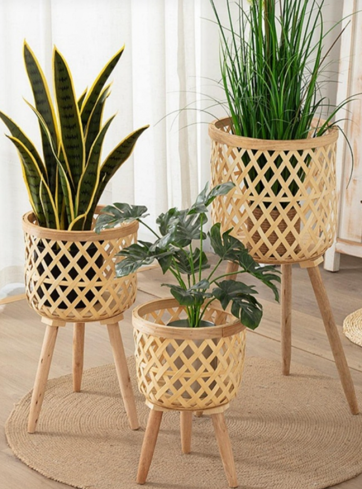 سلة خيزران زهرة مبسط منسوج زهرة للمنزل زخرفة قطعة و احدة