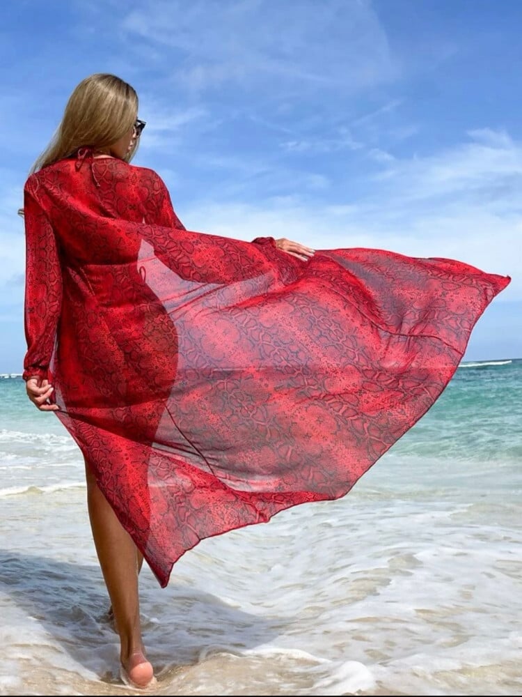 ملابس سباحة بيكيني مثلث جلد الثعبان مع كيمنو